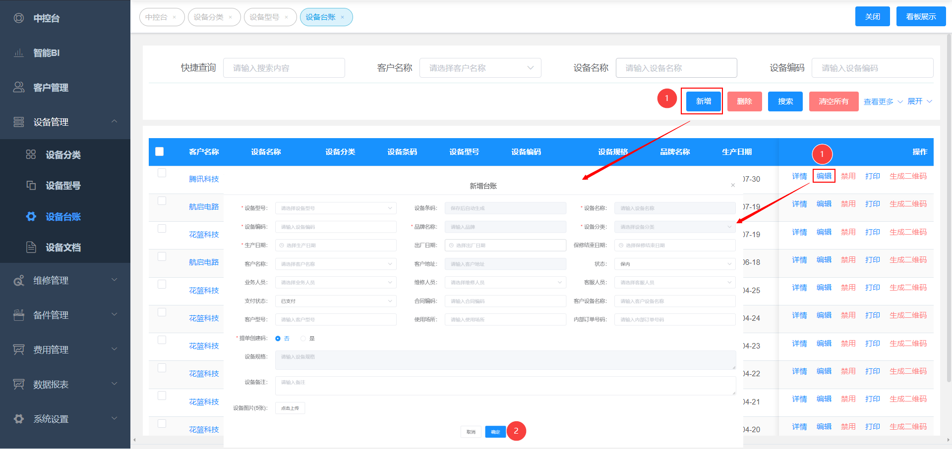 点击“编辑”按钮,修改客户信息后,点击确定。